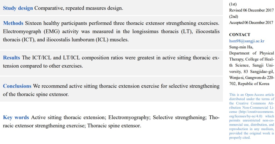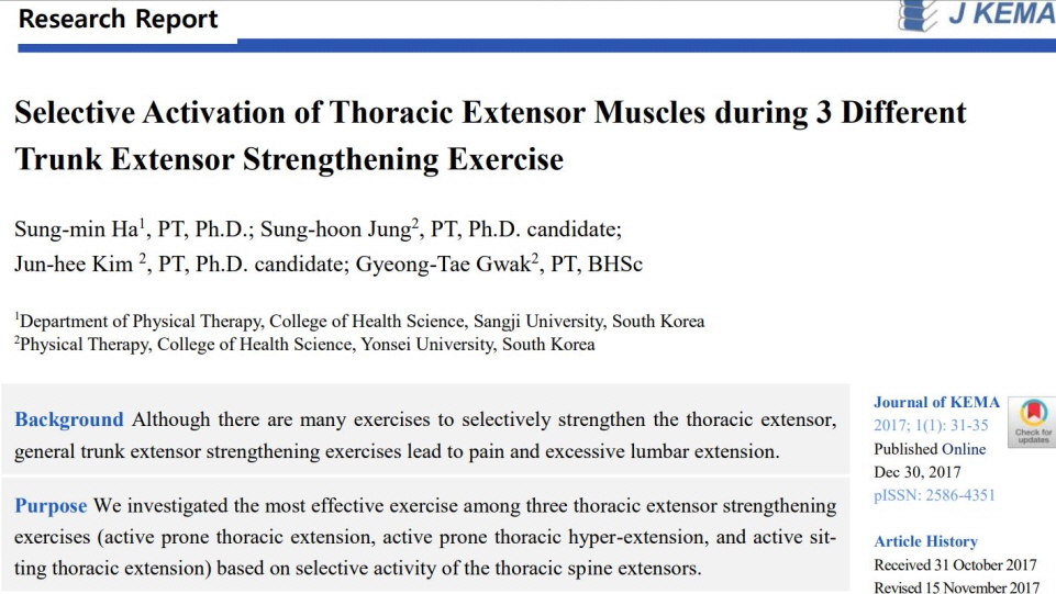 Selective Activation of Thoracic Extensor Muscles during 3 Different Trunk Extensor Strengthening Exercise