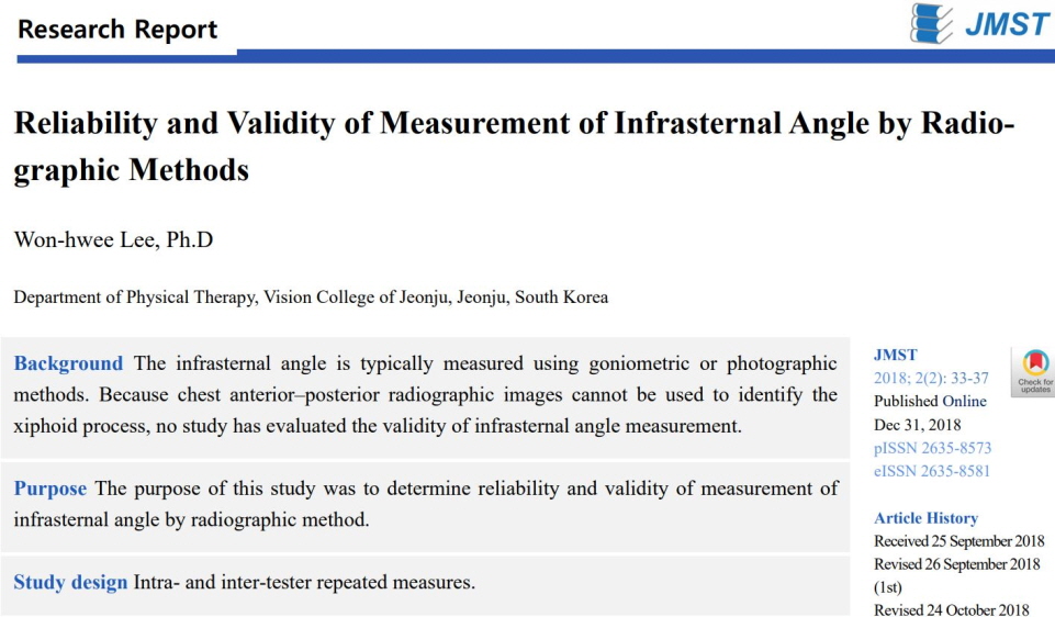 Reliability and Validity of Measurement of Infrasternal Angle by Radiographic Methods