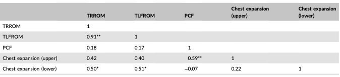 Correlation between trunk rotation and lateral flexion range of motion, peak cough flow, and chest expansion in stroke patients