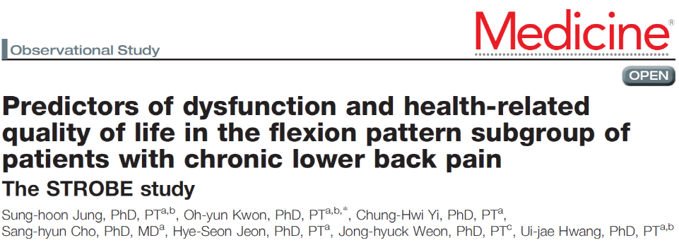 Title : Predictors of dysfunction and health-related quality of life in the flexion pattern subgroup of patients with chronic lower back pain: The STROBE study.