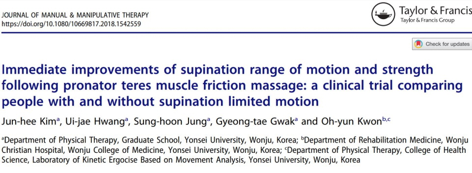 Title : Immediate improvements of supination range of motion and strength following pronator teres muscle friction massage: a clinical trial comparing people with and without supination limited motion