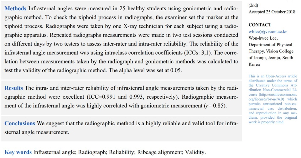 Reliability and Validity of Measurement of Infrasternal Angle by Radiographic Methods