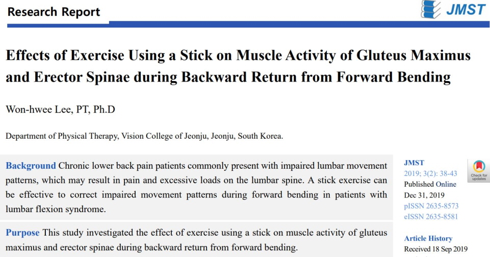 Effects of Exercise Using a Stick on Muscle Activity of Gluteus Maximus and Erector Spinae during Backward Return from Forward Bending