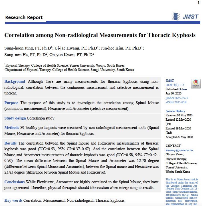 Correlation among Non-radiological Measurements for Thoracic Kyphosis
