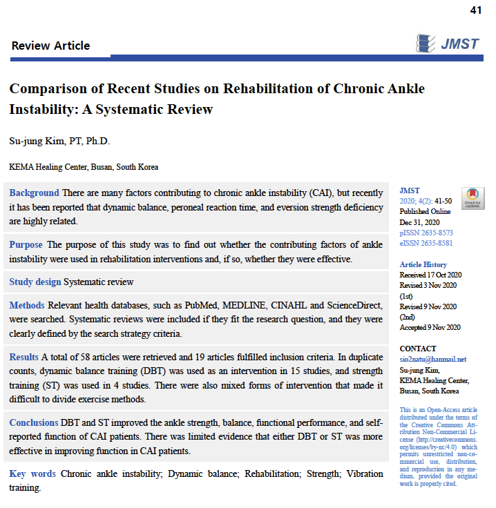 Comparison of Recent Studies on Rehabilitation of Chronic Ankle Instability: A Systematic Review