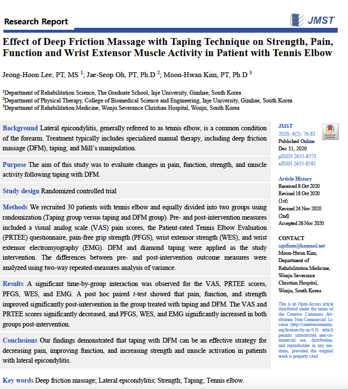 Effect of Deep Friction Massage with Taping Technique on Strength, Pain, Function and Wrist Extensor Muscle Activity in Patient with Tennis Elbow