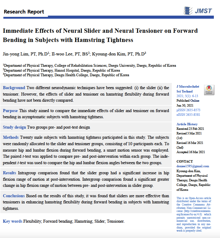 Immediate Effects of Neural Slider and Neural Tensioner on Forward Bending in Subjects with Hamstring Tightness