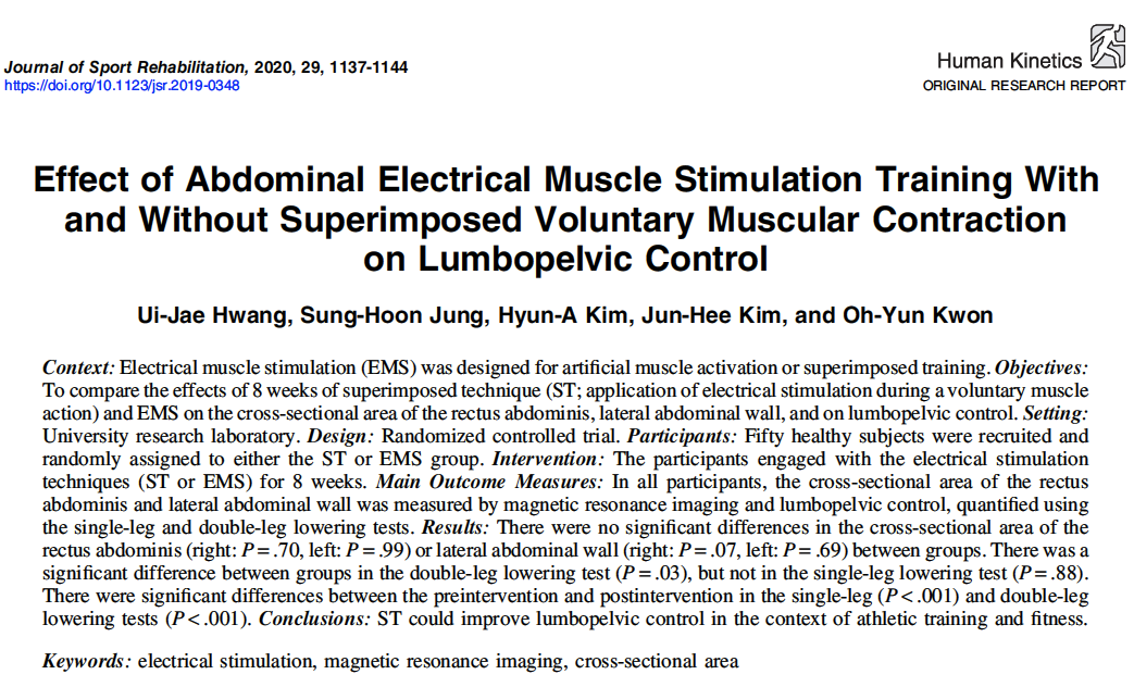 Title: Effect of Abdominal Electrical Muscle Stimulation Training With and Without Superimposed Voluntary Muscular Contraction on Lumbopelvic Control.