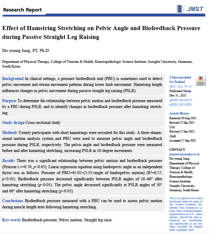 Effect of Hamstring Stretching on Pelvic Angle and Biofeedback Pressure during Passive Straight Leg Raising
