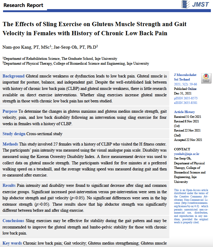 The Effects of Sling Exercise on Gluteus Muscle Strength and Gait Velocity in Females with History of Chronic Low Back Pain
