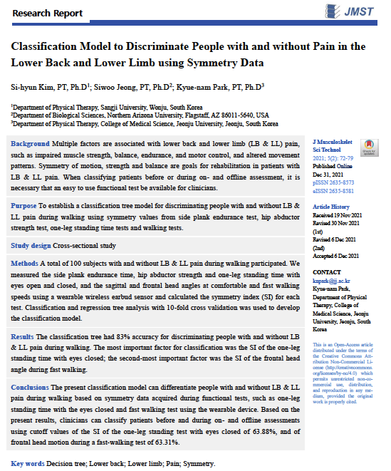 Classification Model to Discriminate People with and without Pain in the Lower Back and Lower Limb using Symmetry Data