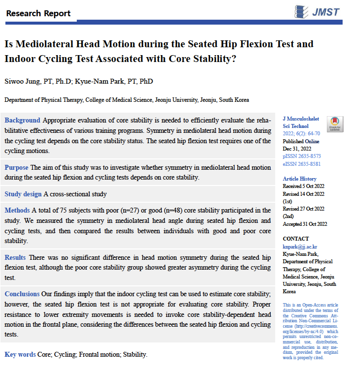 Is Mediolateral Head Motion during the Seated Hip Flexion Test and Indoor Cycling Test Associated with Core Stability?