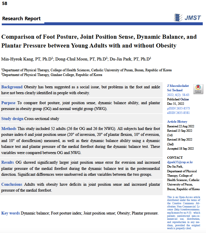 Comparison of Foot Posture, Joint Position Sense, Dynamic Balance, and Plantar Pressure between Young Adults with and without Obesity