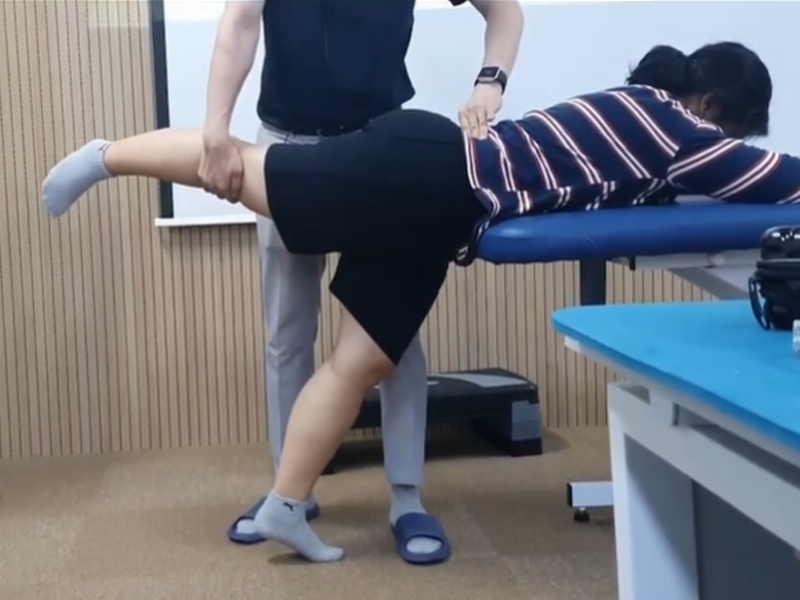 hip flexor, abductor muscle인 TFL을 억제 시키는 방법으로 reciprocal inhibition을 사용하여 TFL과 반대 작용인 hip extensor, adductor을 activation 시킬 경우