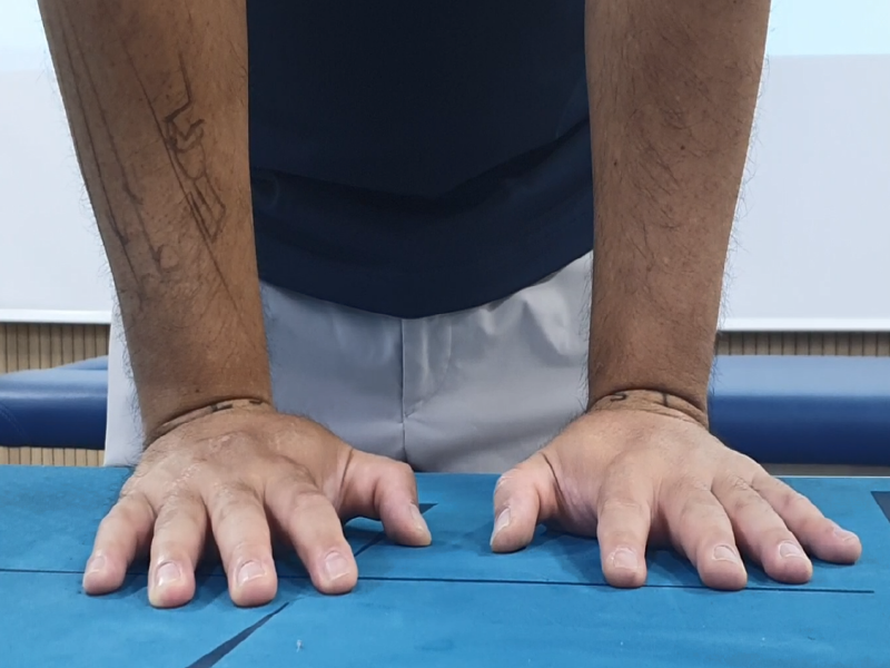 이러한 wrist bone의 비정상적인 관절의 움직임은 바닥에 손을 짚을 때 나타나는 손목의 주름 형태로 유추해 볼 수 있을 것 입니다.